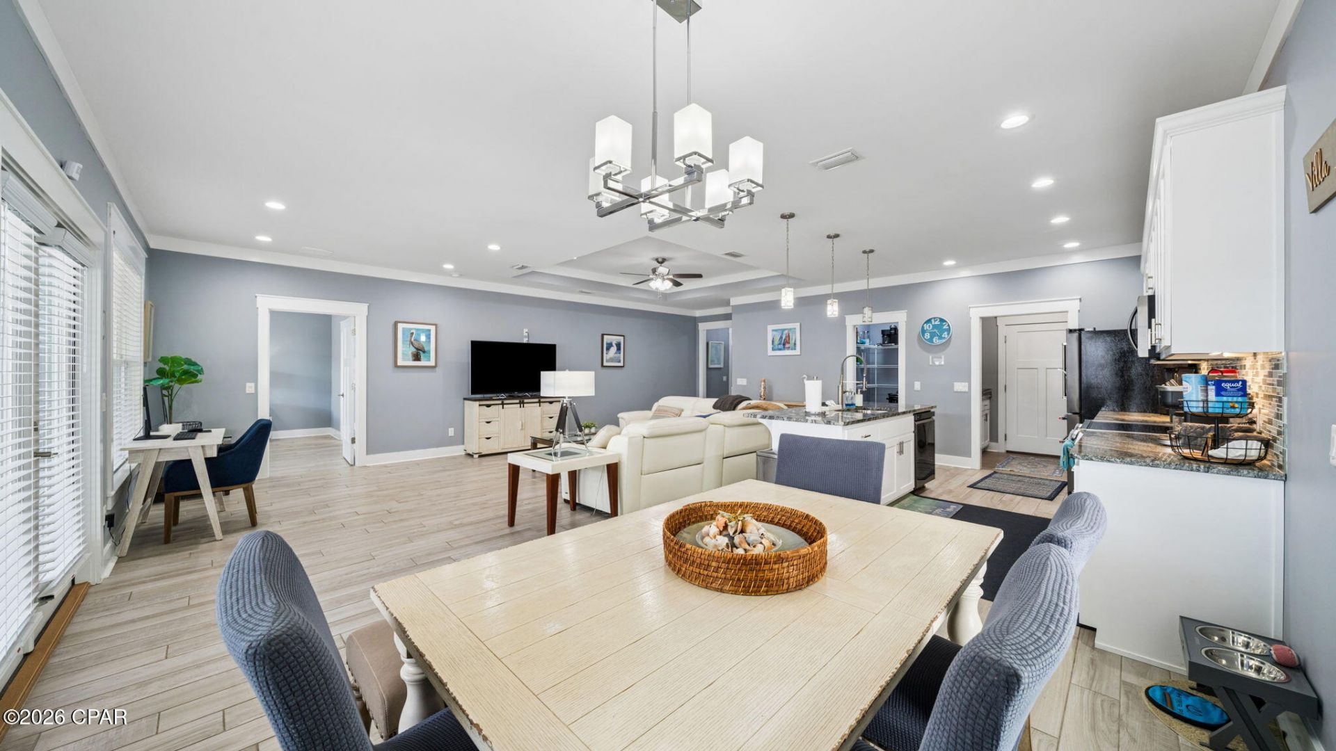 Welcome to 330 Palm Drive--an exceptional opportunity in the highly sought-after west end of Panama City Beach. Perfectly positioned just a short 10-minute walk to the sugar-white sands and emerald waters of the Gulf, this beautifully appointed 3-bedroom, 2-bath home blends coastal charm with modern comfort. Step inside to discover an inviting open layout highlighted by raised tray ceilings in every room, creating a spacious and airy feel throughout. The gourmet kitchen is a true centerpiece, featuring an oversized island, stainless steel updated appliances, and an extra-large refrigerator--ideal for entertaining or hosting guests. The home is tastefully furnished with coastal décor, offering a turnkey experience for immediate enjoyment or rental income. Custom finishes elevate the space, including beautifully designed bathroom counters and showers, along with spacious custom walk-in closets that provide both luxury and functionality. Outside, enjoy your own private backyard--perfect for relaxing after a day at the beach, entertaining friends and family, or creating your own outdoor oasis. With no HOA and no rental restrictions, this property offers unmatched flexibility. Whether you're searching for a primary residence, second home, or a high-performing short- or long-term rental investment, 330 Palm Drive checks every box. Located in one of the most desirable areas of Panama City Beach, you're just minutes from dining, shopping, and local attractions, all while enjoying the quiet charm of the ''West End''. Don't miss your chance to own a piece of paradise with endless potential. Call me OR your trusted realtor and see this home for yourself!